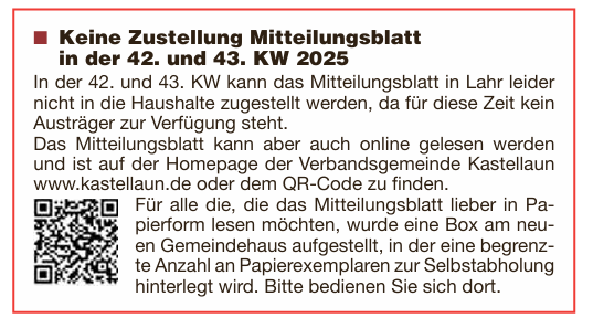 Aus dem Mitteilungsblatt der VG Kastellaun