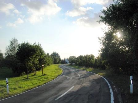 Ortseinfahrt aus Lieg kommend in die Hauptstr. im "Unterdorf". Hinter der Kurve li. ist der Verbindungsweg zum Hunsrück-Mosel Radweg.